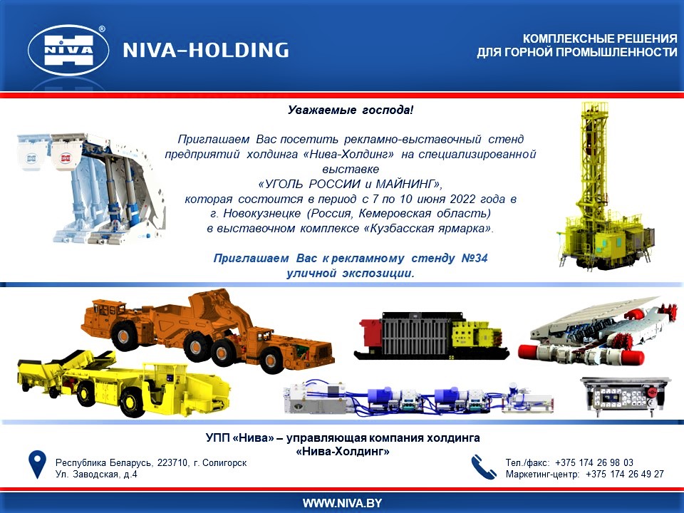 Этот год не станет исключением, и на выставке «Уголь России и Майнинг-2022» под брендом «NIVA» будут представлены: