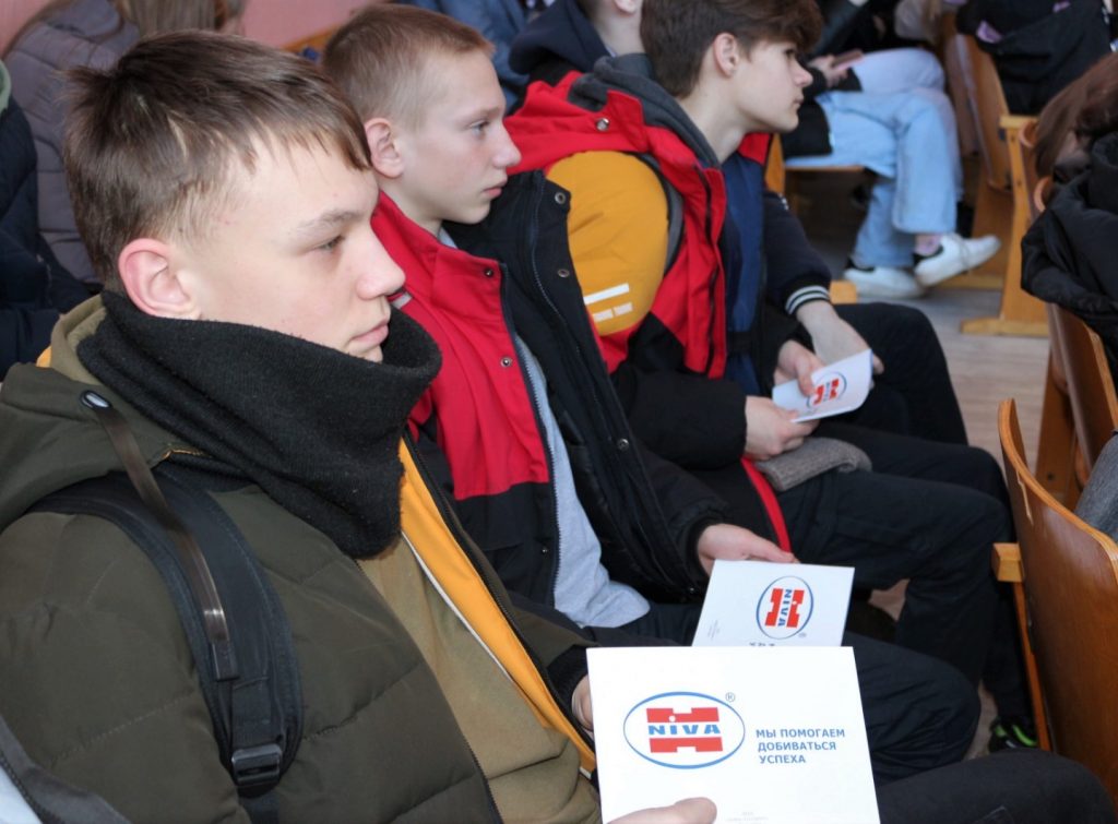 Заместитель генерального директора по управлению персоналом и правовым вопросам А.Ю. Мойсееня выступил от лица холдинга «Нива-Холдинг». Андрей Юрьевич сделал акцент на возможности получить профессии слесаря-ремонтника, токаря в стенах лицея, и по окончании трудоустроиться на предприятиях холдинга.